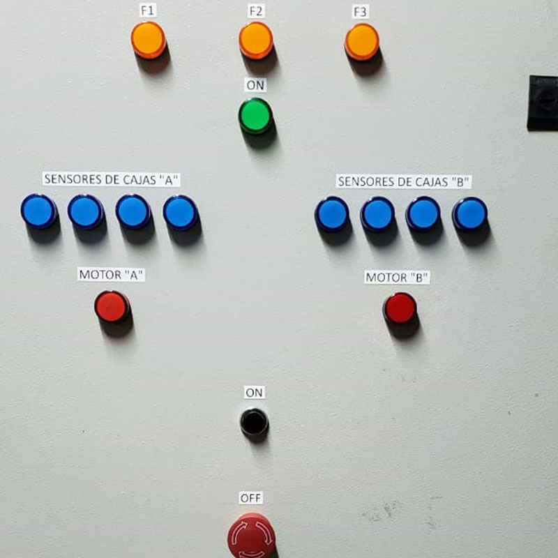 También hemos realizado en varias ocasiones, tableros de control para transportadores en la industria cárnica de frigoríficos de bovinos y porcinos, automatizando todo el sistema de cadenas en el área de desposte.